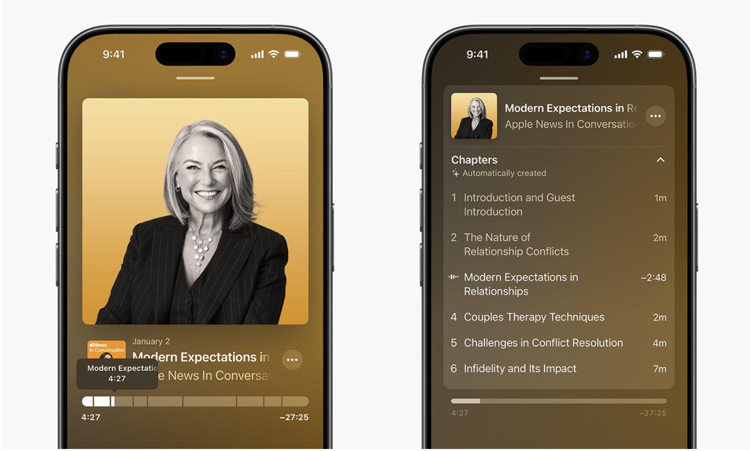 这项功能不仅极大地减轻了创作者的负担,也让听众能够更轻松地在长篇内容中导航和跳转。同时,苹果也为创作者保留了控制权,他们可以在后台编辑或选择禁用此功能。